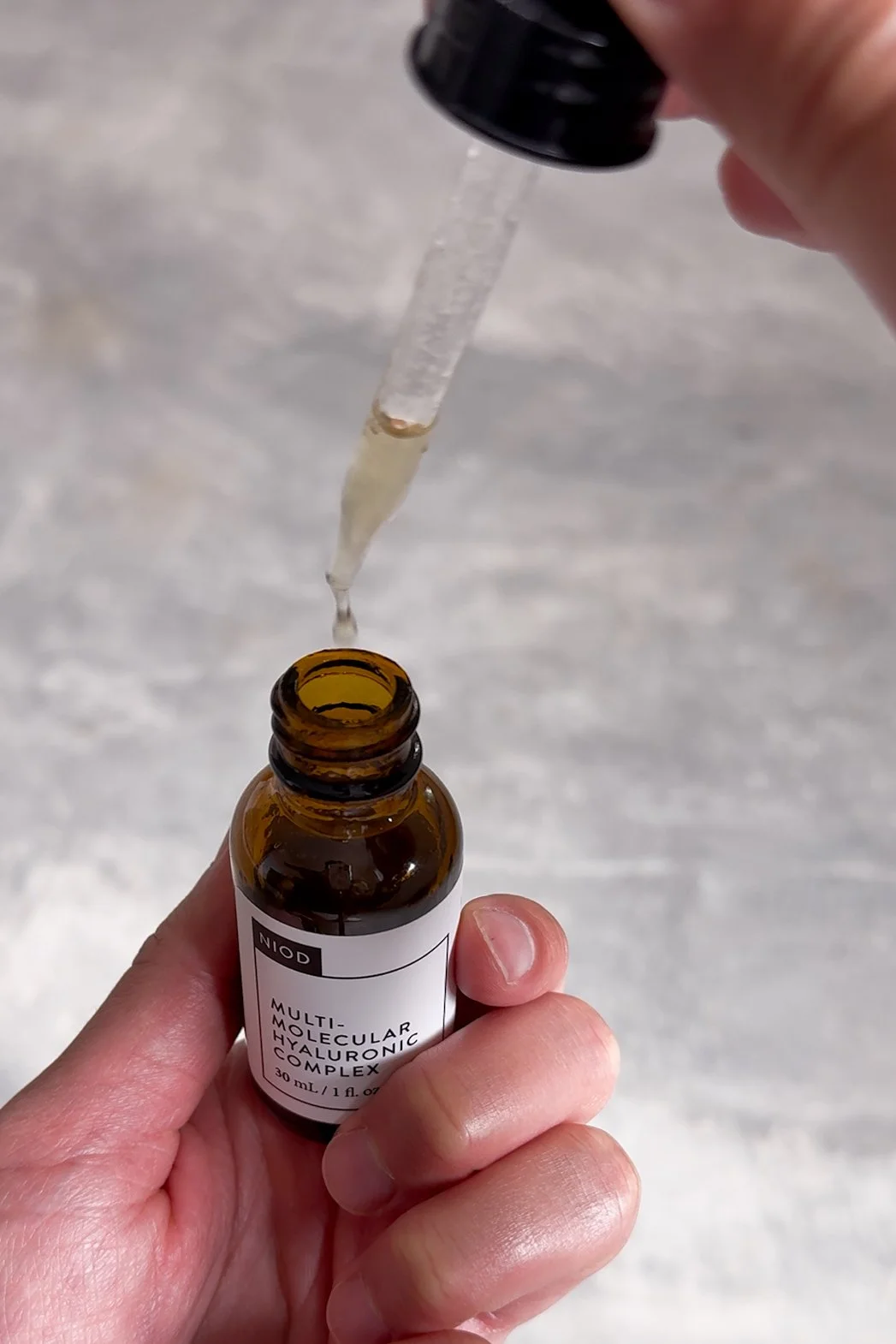 Imagine water. You've now essentially imagined the texture of the Niod serum. It's drippy, it's hydrating, it's immediately soaked in.